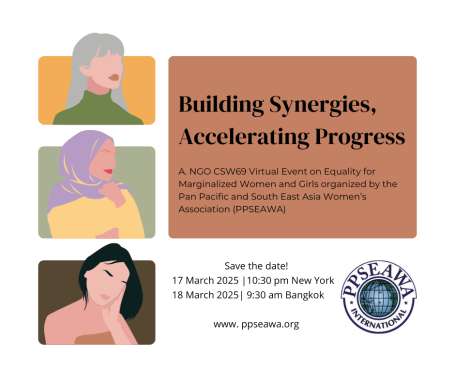 17 March. Parallel Event: Building Synergies, Accelerating Progress: Equality for Marginalized Women and Girls. Organized by PPSEAWA International.